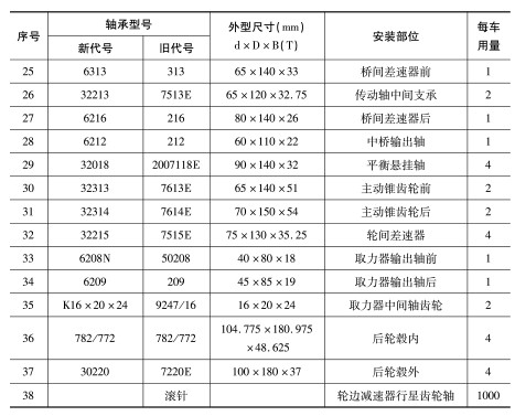 | 序号 | 軸承型号 | 外(wai)形尺寸(mm) | 安裝(zhuang)部位 | 每車用(yong)量 | |