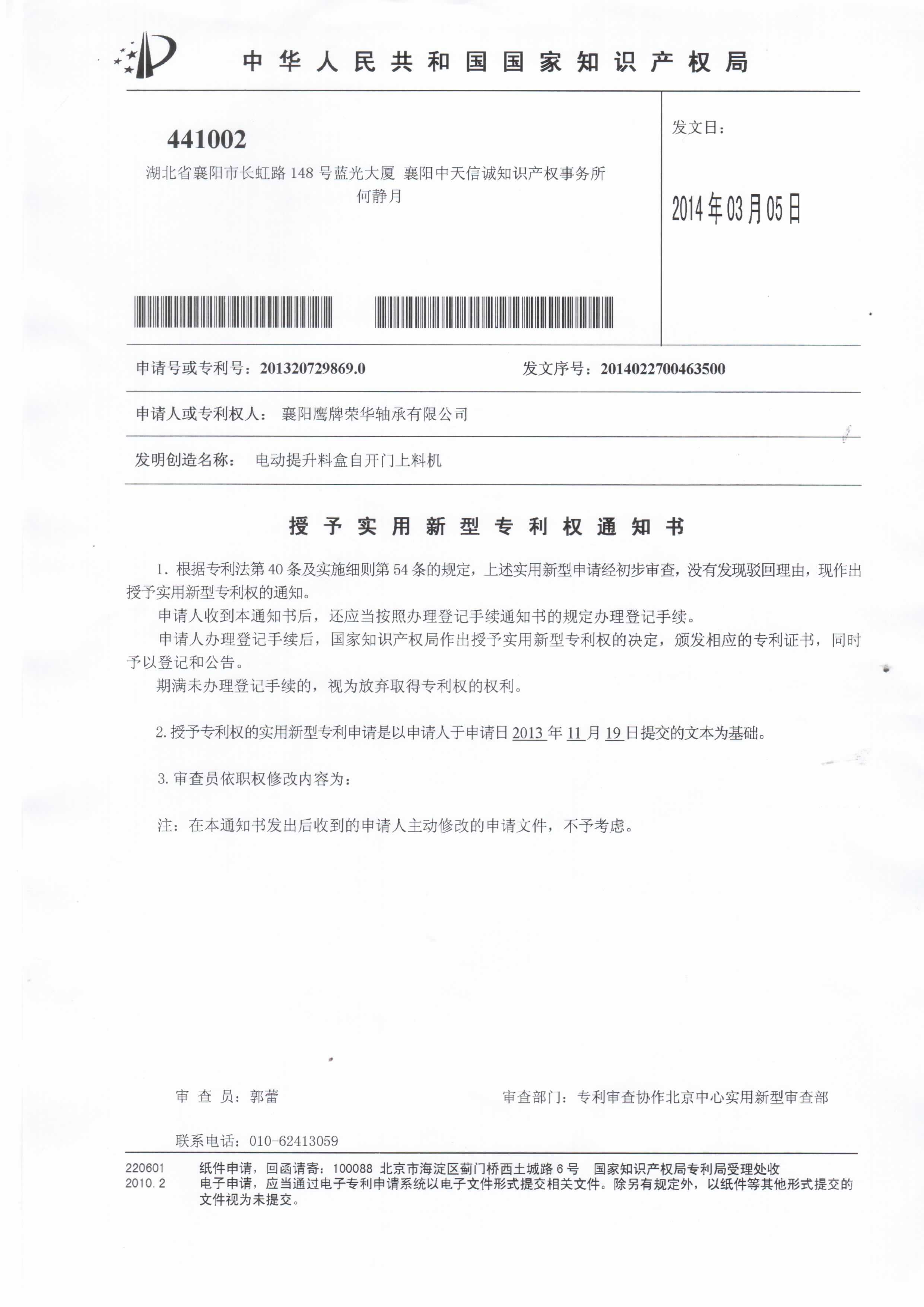 鷹牌軸(zhóu)承圓錐(zhui)滾子軸承自(zì)動裝配電動(dòng)提升料盒自(zì)開門式上料(liao)機